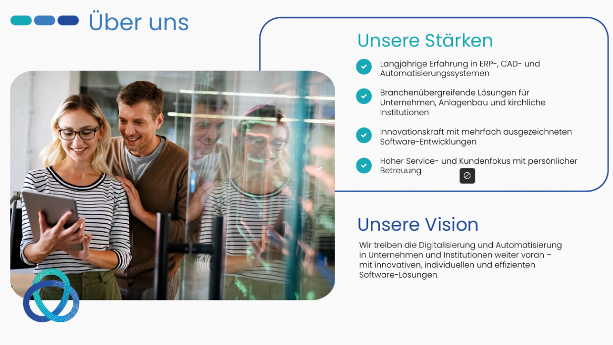 Unsere Philosophie geht über die reine Softwarelösung hinaus – wir verstehen uns als Ihr langfristiger Begleiter auf dem Weg der digitalen Transformation und stehen Ihnen mit Kompetenz, Engagement und Verlässlichkeit zur Seite.
